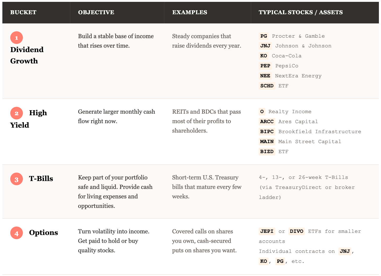Every dollar in your portfolio should fit into exactly one of these buckets: