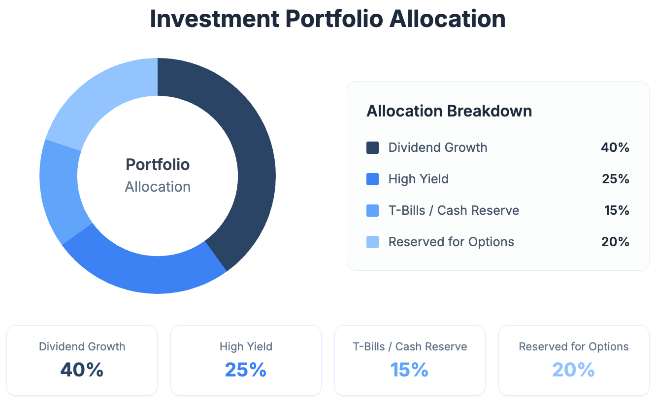 A T-Bill component that keeps cash safe, liquid, and ready to deploy when opportunities arise (Pillar 3)