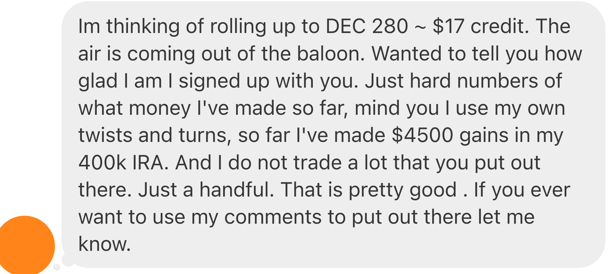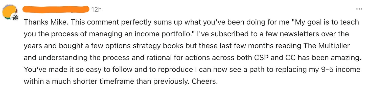 "How do I handle a stock that tanks after I sell a put?" You have several options: 1) Accept assignment and start selling covered calls, 2) Roll the put down and out to a later expiration, or 3) Take the loss and close the position. Your choice depends on whether the drop is market-wide or company-specific, and whether your original investment thesis still holds. We cover specific examples in the case studies section of Sunday newsletters.