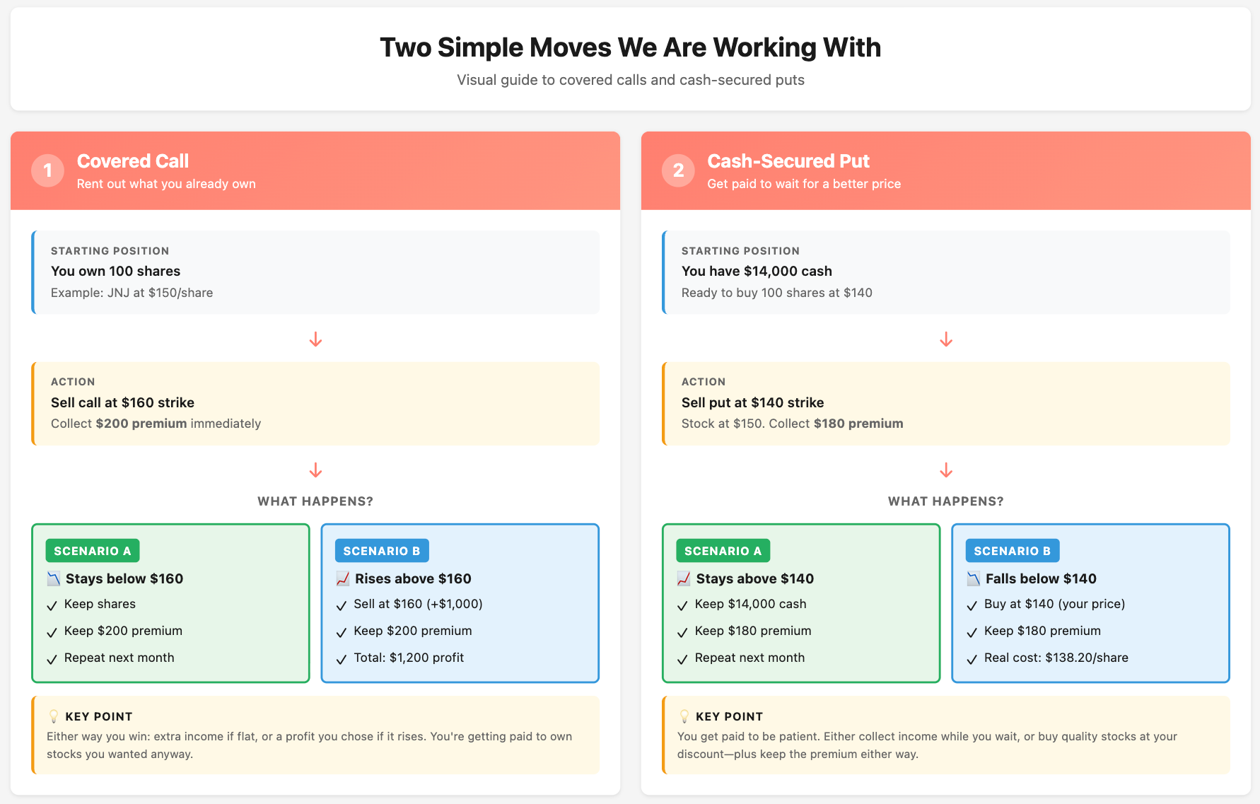 (2.) Cash-Secured Put → You get paid to wait for a better price on the Stock you want