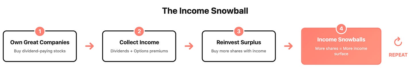 In the next five minutes, you’ll see the entire system: three simple pillars and one repeatable loop that turns dividends and options premiums into reliable, growing income.