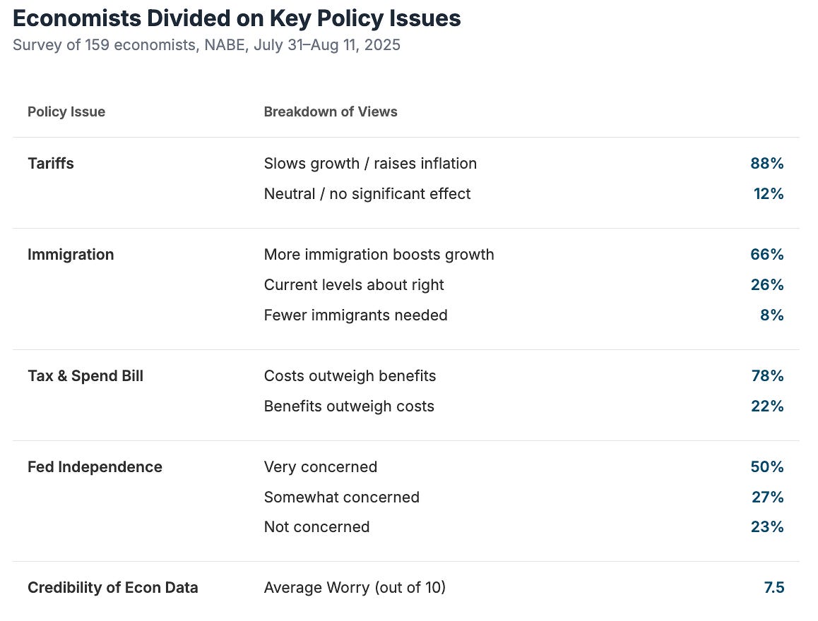 First, a survey of 159 economists concludes that the United States faces serious, ‘self-inflicted’ risks of recession and inflation from tariffs, deficits, and political games.